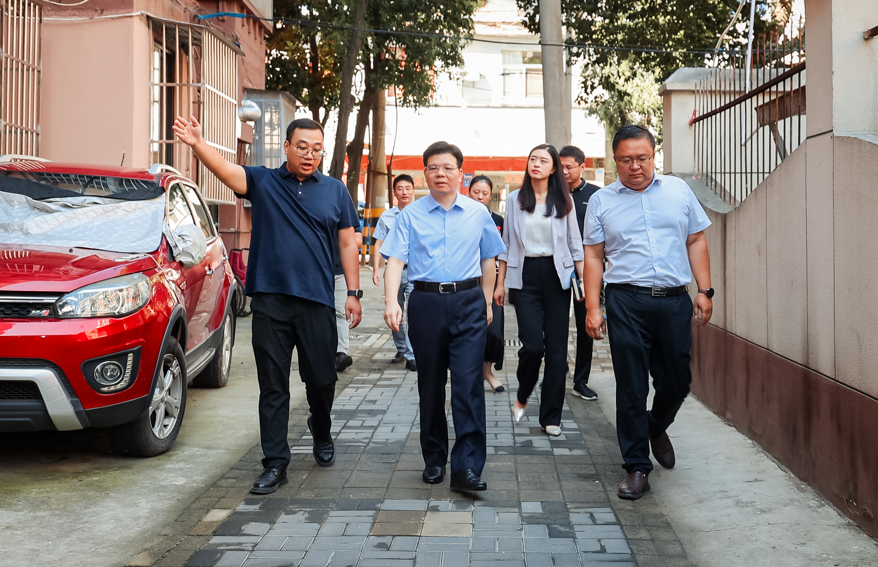 在京口路12号小区,张旭彬边走边听边看,实地了解小区现状,向街道、社区负责人仔细询问有关情况。他强调,小区环境提升事关民生福祉,事关城市品质和形象。街道和社区要根据老旧小区特点,统筹谋划、精准施策,做好飞线治理、垃圾污水处理、外墙美化等人居环境整治工作,做到紧盯细节、狠抓提升、兼顾实用、守牢安全,高标准、高质量推动小区环境提升。
